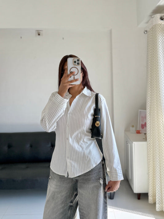White & Black Fitted Shirt (Corset back)