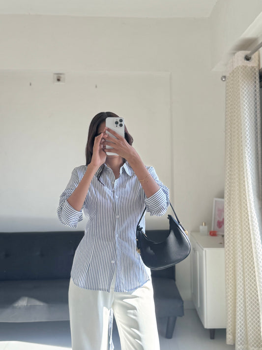 Sold outBlue Fitted Shirt (Corset back)